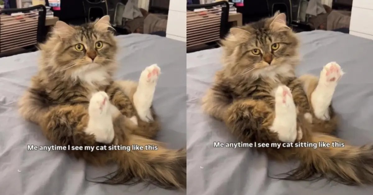 There’s no such thing as a “normal” sitting position when it comes to cats. They often choose comfort over convention, even if it means perching in ways that look completely bizarre to us. However, those unexpected poses are often what make them so endearing. One such moment has recently been captured on video, featuring a cat whose unique sitting posture stands out even by feline standards.