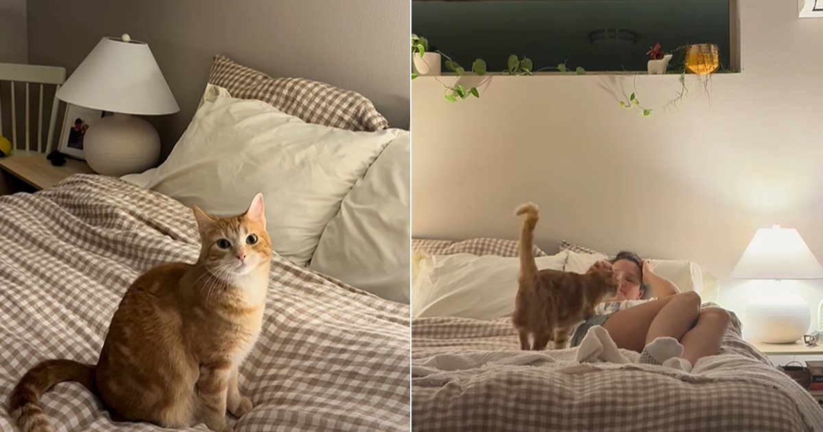 Soon, viewers could see the fur baby sweetly demanding some heartfelt snuggles from her mom with the softest meows. The mom clearly was running a bit late as she went on to change into her night clothes before getting into bed. As soon as the owner lied down on the bed, the cat became super comfortable around her and began enjoying snuggles, pets and soft scratches. The clip will melt anybody’s heart.