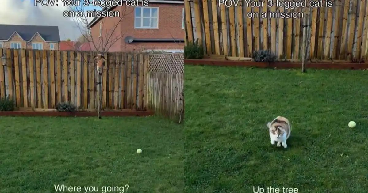 The Instagram video began by giving a closer look at the cute cat. She had climbed up a tree in the garden and was hanging in there. The owner caught the feline’s parkour act on camera. In the meantime, the text written over the clip read, “POV: Your 3-legged cat is on a mission.”