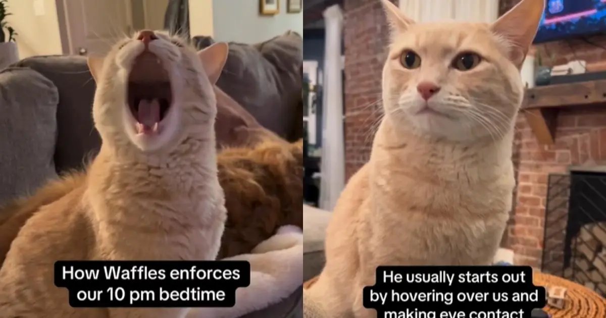 A viral Instagram Reel is proving that some pets don’t just follow routines; they enforce them. In a now-popular video shared by the account @thegoldenbreakfastclub, a cream-colored cat named Waffles makes it very clear that bedtime is non-negotiable, and 10 p.m. means lights out.
